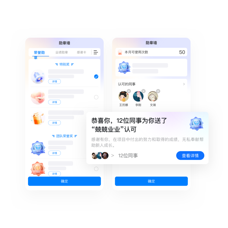 荣誉表彰、部门认可、同事互赠